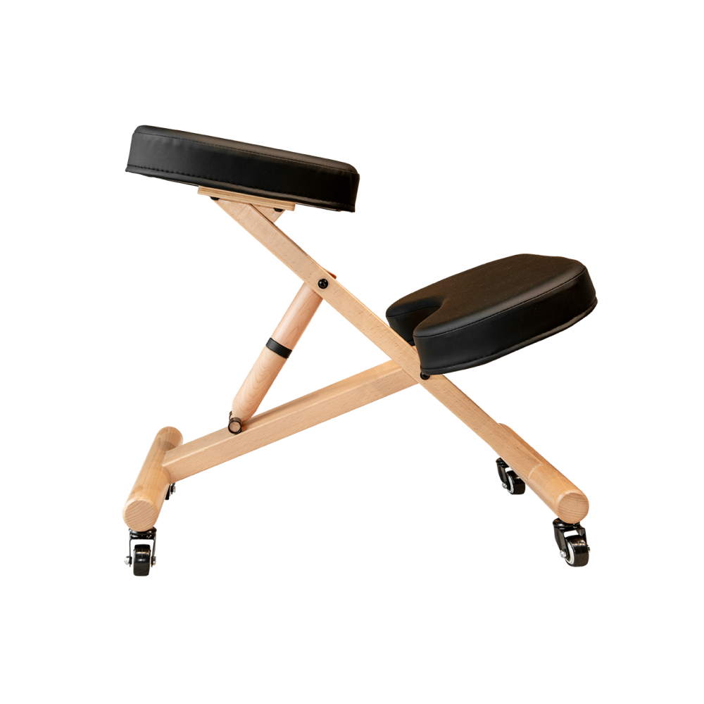 Легкая портативная деревянная конструкция с мягким сидением, упором для колен и прочными колесиками. Специальный наполнитель ComfortFoam делает сидение на стуле комфортным и приятным.